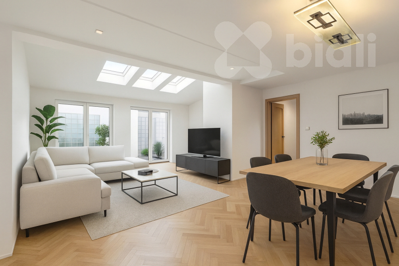 Celková užitná plocha činí 159 m2, z toho terasa zaujímá zhruba 25 2 a sklep 4 m2. Byt prošel v roce 2001 kompletní rekonstrukcí zahrnující podlahy, dveře, kuchyňskou linku, koupelnu, topení i všechny rozvody. V roce 2009 byla část terasy odborně zastřešena a elegantně propojena s obývacím pokojem, který se tím výrazně zvětšil. Atmosféru domova doplňuje plně funkční krb a pro větší komfort i bezpečnost je k dispozici vestavěný trezor s klíčem a kódem.