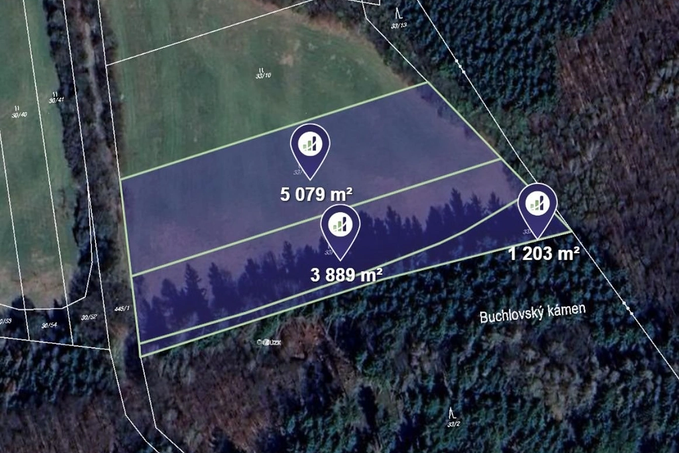 • Parcela č. 33/5 - o výměře 1203 m2 (Ostatní plocha)