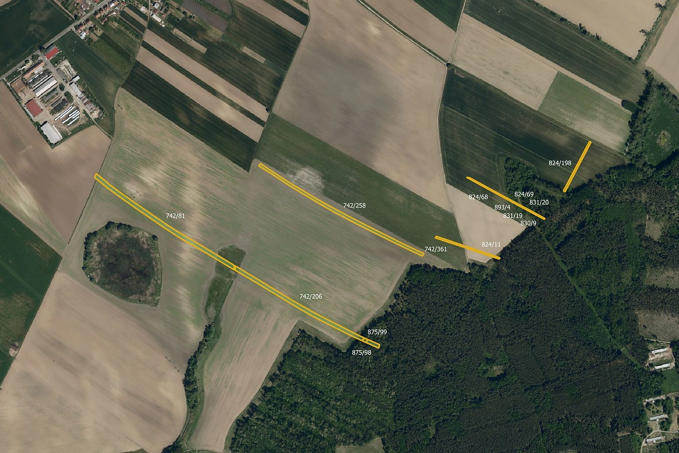 Celková výměra těchto pozemků činí 18 279 m. Z toho je 17 427 m orné půdy.