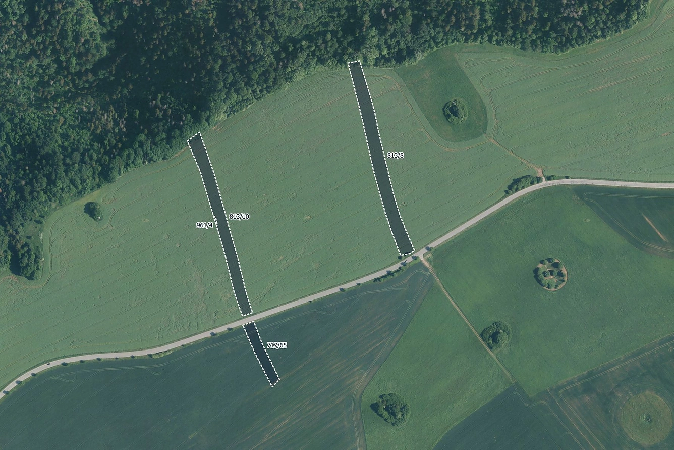 Pozemky jsou zapsány