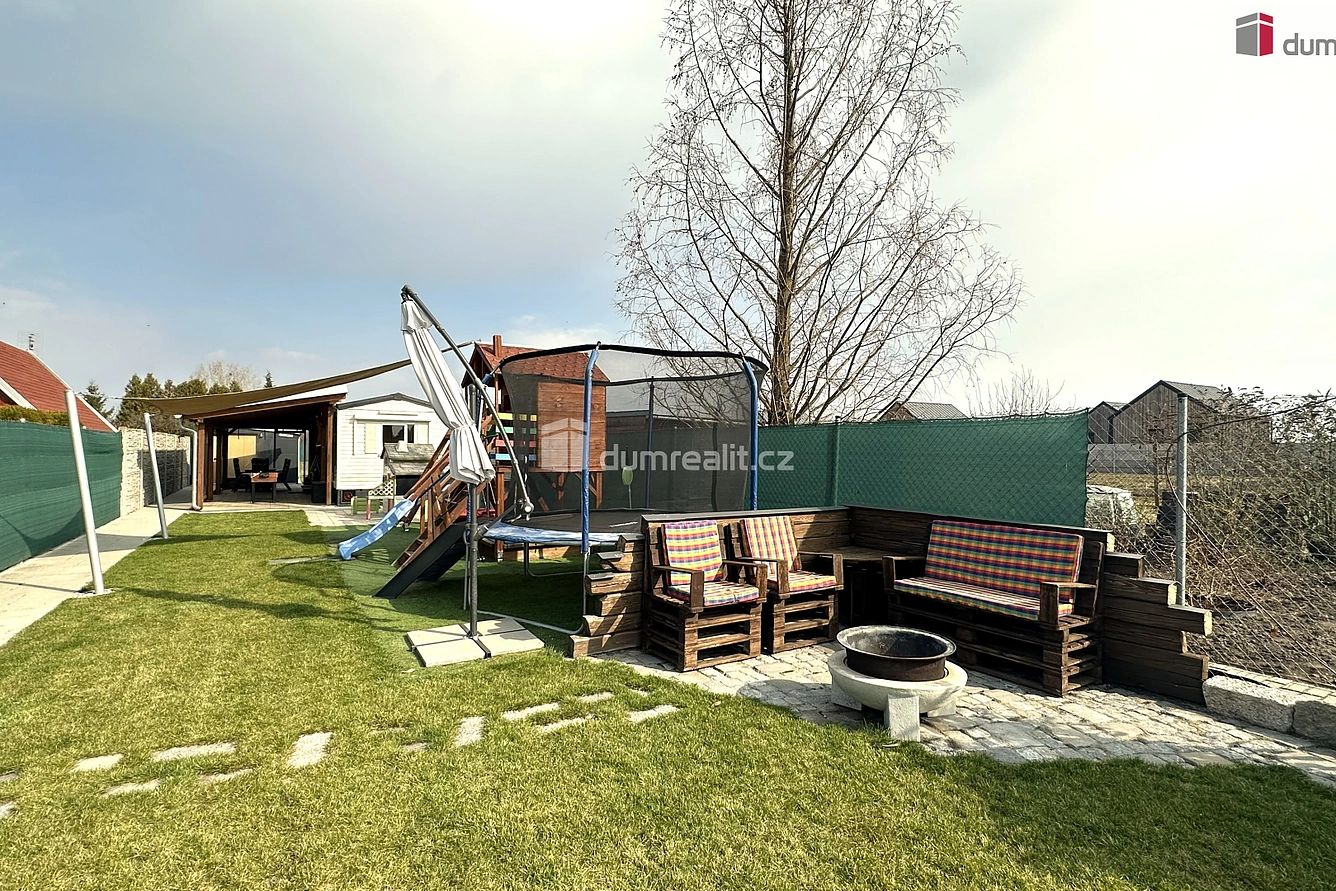 Dumrealit.cz Vám zprostředkuje prodej krásné zahrady o rozloze 729m2, v zahrádkářské kolonii U letiště. Zahrada je pomyslně tvořena dvěma částmi, přední část je odpočinková a hrací, zadní část je pro pěstování ovoce a zeleniny. Přední část tvoří prostorný a plnohodnotně zařízený Mobilheim, na který navazuje pergola s posezením, prostor ro bazén, posezení s ohništěm, dále dřevěné dětské hřiště s trampolínou a prostorná montovaná bouda na nářadí. Pozemek je skoro celý zatravněn, ale v zadní části je také dostatek místo pro pěstování.
