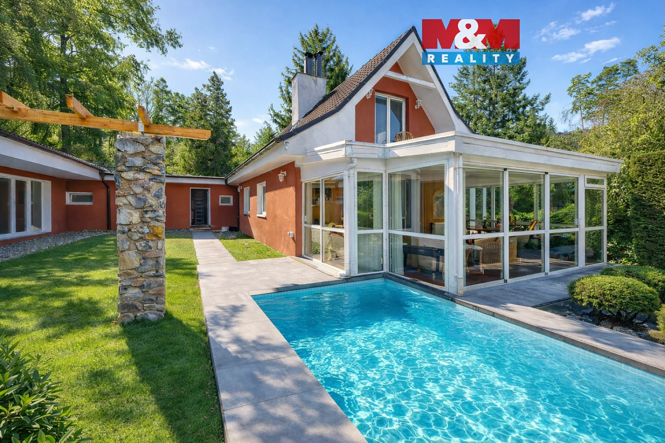 Soukromá, pečlivě udržovaná zahrada, vlastní bazén pro letní dny, parkování přímo na pozemku. Každý detail tady vytváří pocit klidu, který dnes už téměř nejde koupit.