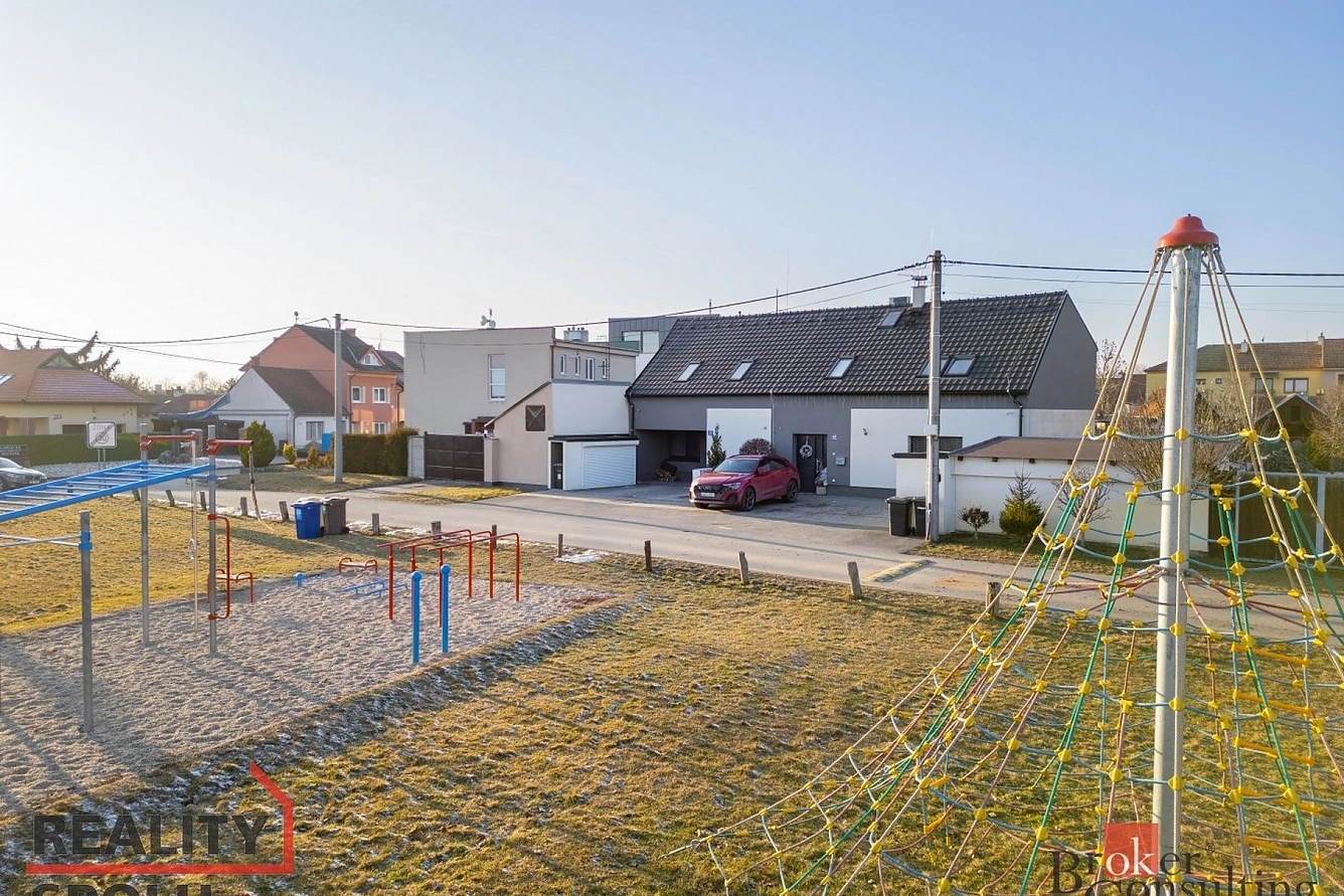 Velkou přidanou hodnotou je i okolí nemovitosti – přímo před domem se nachází dětské hřiště a workoutové hřiště, což podtrhuje rodinný a komunitní charakter celé lokality.