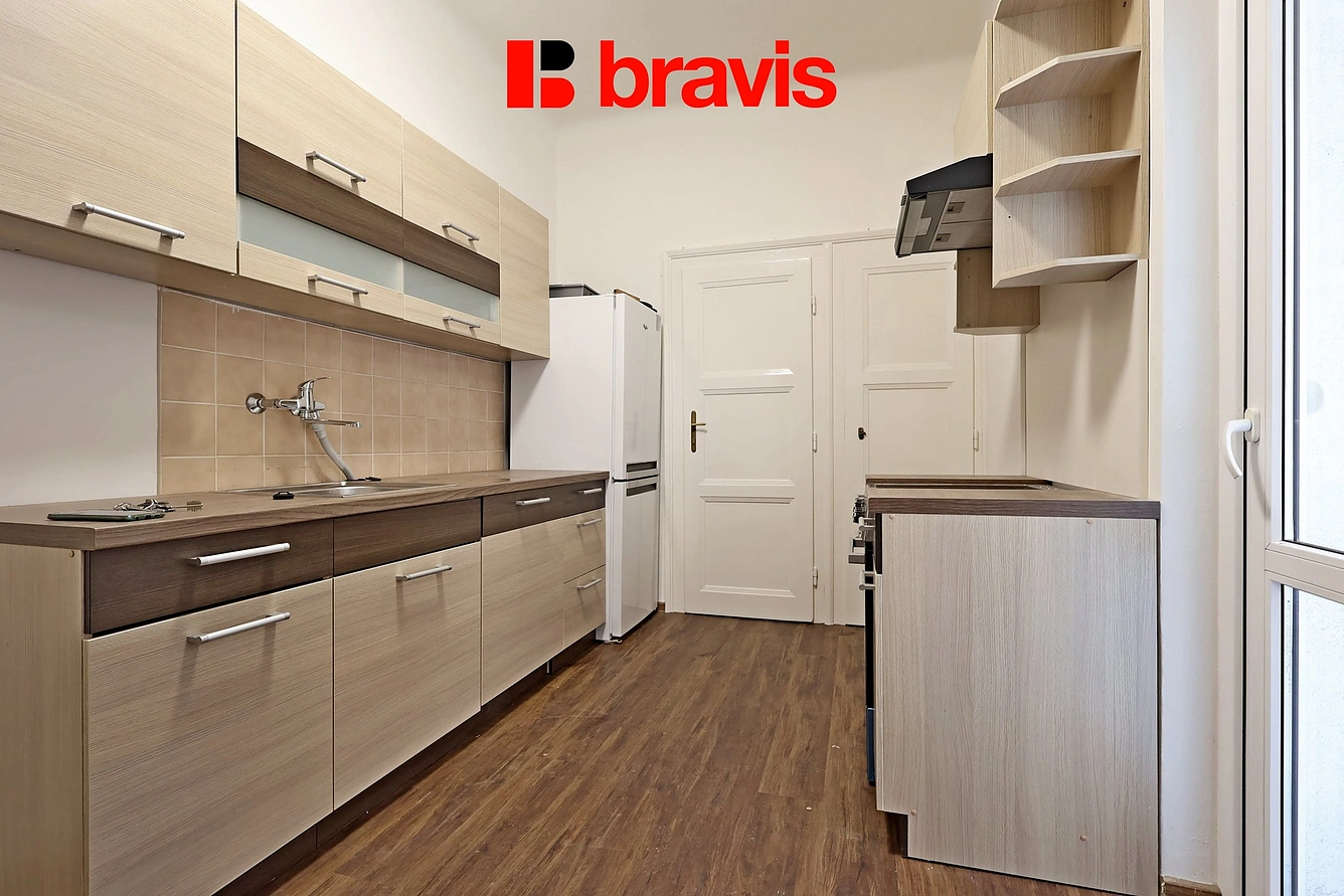 Kuchyně je vybavená novou myčkou, elektrickou troubou, varnou deskou a lednicí. Z kuchyně je vstup na balkon orientovaný do klidného vnitrobloku. Z kuchyně je přístup do bývalého pokoje pro služebnictvo, vhodného k uskladnění potravin. Dále je k dispozici samostatná spíž.