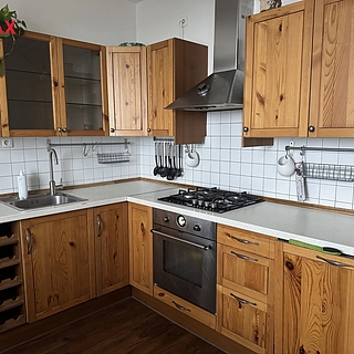 Exklusivně Vám představujeme jedinečnou nabídku pronájmu prostorného bytu v rodinném domě Trnavě u Třebíče. Byt se nachází v 1. NP bez výtahu ve zděném rodinném domě. Dispozice bytu je 3 + 1 o velikosti 92 m2. Vybavení bytu zahrnuje prostornou kuchyňskou linku s elektrickým sporákem, digestoří a lednicí s mrazákem. Dále je v kuchyni k dispozici dřevěná lavice, stůl a židle.