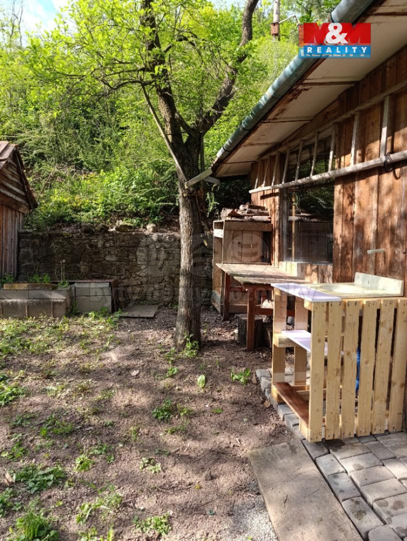Na zahradě rostou ovocné stromy, je zde dostatek místa na pěstování i posezení. Parkování je možné přímo na pozemku. Chata je podsklepená.